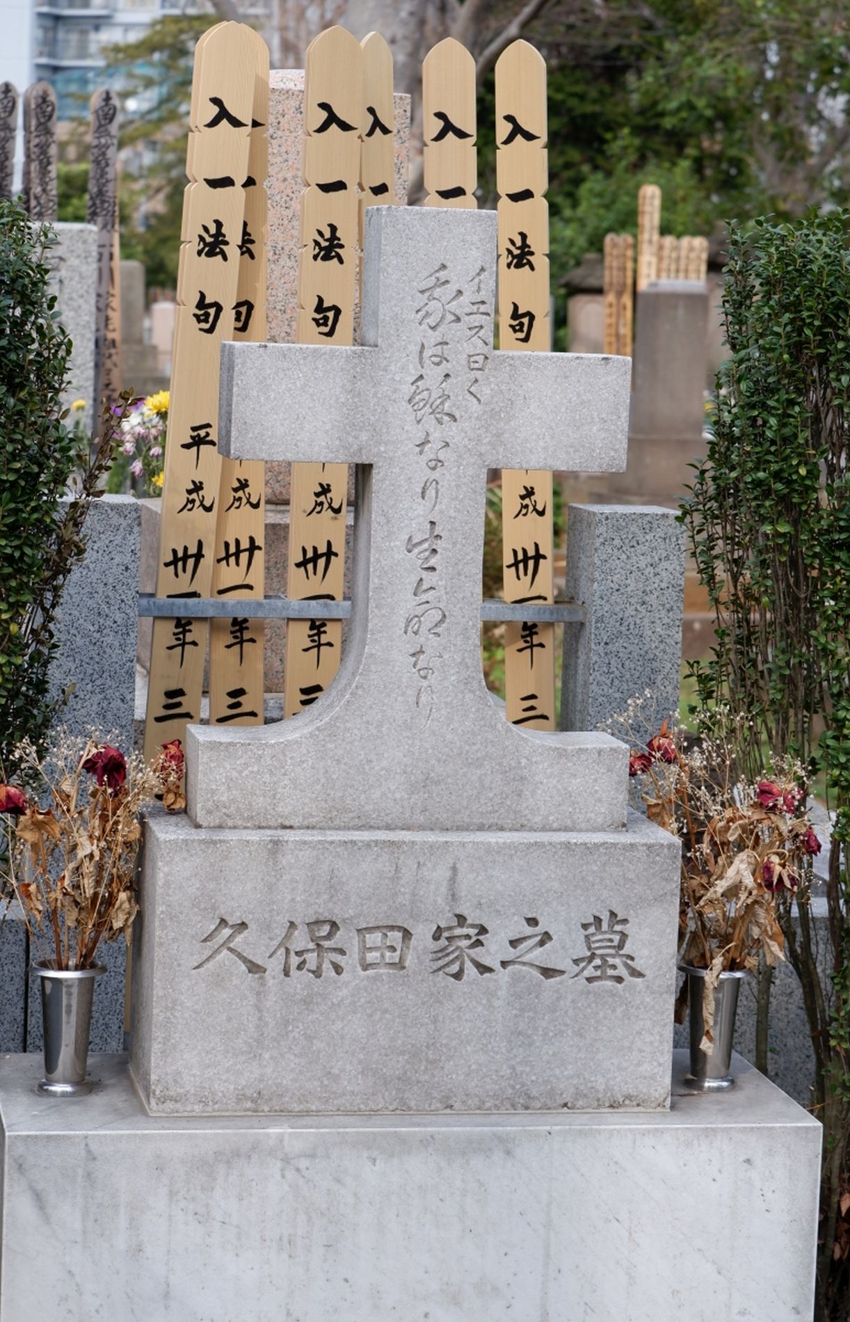 Unlike some cemeteries in Japan that have foreign graves, those at Zoshigaya are not concentrated in a distinct gaijin bochi (cemetery for foreigners) but rather scattered about. Thus, it is not unusual to find markers with Christian symbols, including crosses of various designs mixed among the more common Japanese designs. Not all of these are foreign graves; many are Japanese.