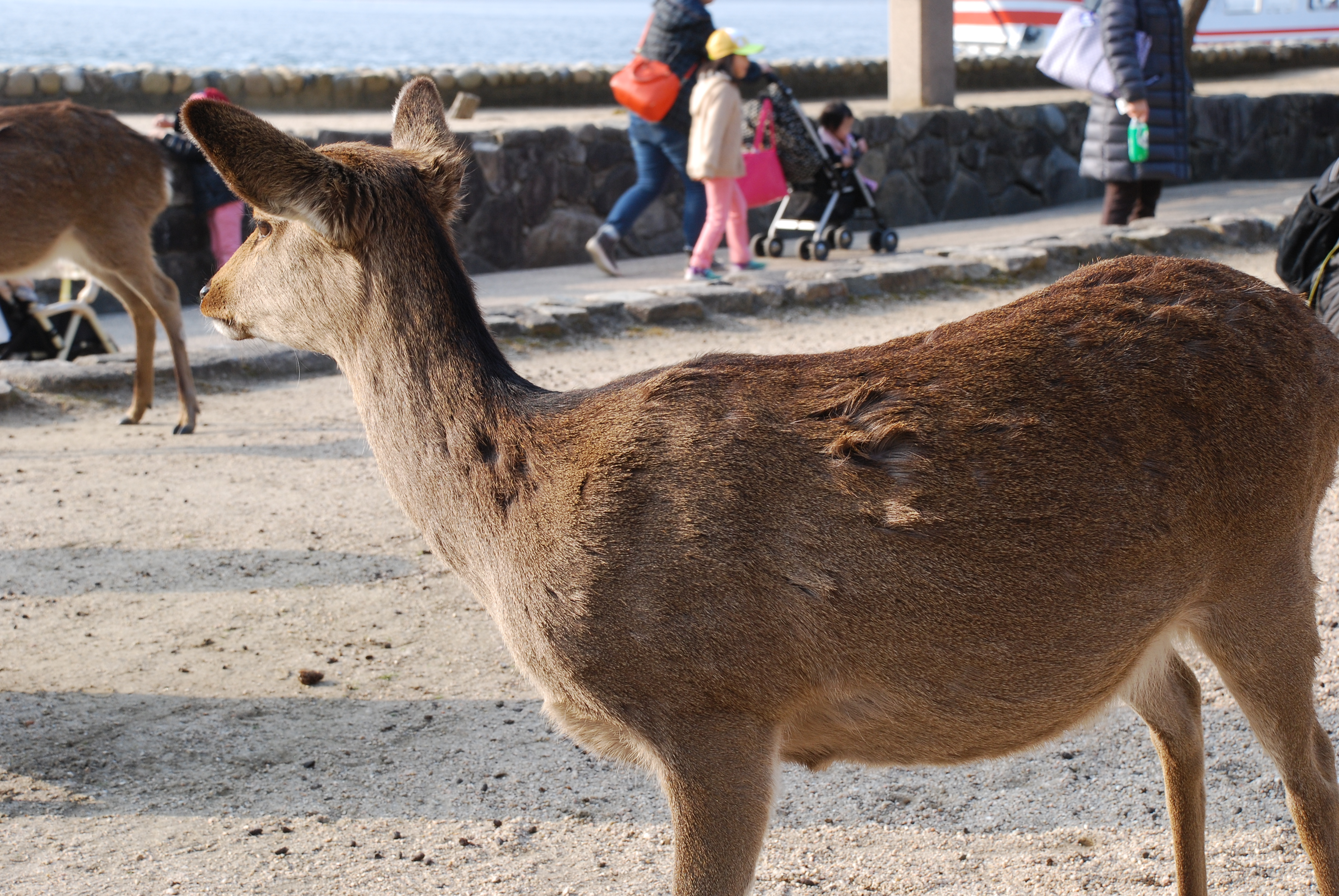 Unlike Nara, Miyajima does not offer an opportunity to feed the deer. However, just like Nara, the deer have free roam of the island. As such, it is possible to capture a photo which includes the famous Itsukushima shrine together with the perhaps equally famous deer of this particular island near Hiroshima. During my visit there, I managed to photograph many of the deer, and a couple of red kites circling over the ocean while attempting to catch fish. This accumulation of events truly allowed me to appreciate the island’s nature and environment.