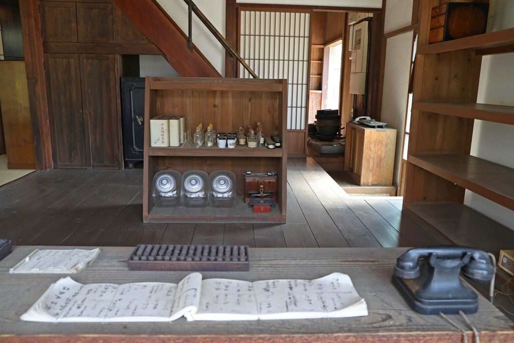 Particularly interesting are the shops that combine features going back into the Edo period with 20th century artifacts, such as hand-cranked cash registers. Such shops survived well into the postwar period and a few still exist. Viewing one of the relocated shops in the east zone of the park, I was reminded of something I saw frequently when I was first in Japan in 1971. A shopkeeper would calculate the change due me using a small electronic calculator, a device that was just becoming affordable and common at that time. Then, the shopkeeper would check the accuracy of calculators using an abacus.