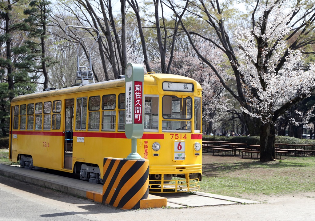 The Museum is child-friendly, and among its exhibits is a Tokyo tram from 1962 that seems to be of particular interest to young boys. In the Koganei Park that surrounds the museum there is also a steam engine and coaches together with various play facilities for young children. The park is a good place to picnic all year round, but it is especially good during the o-hanami (blossom viewing) days, when the 1,700 flowering cherry trees in some 50 varieties in the park are in full bloom.