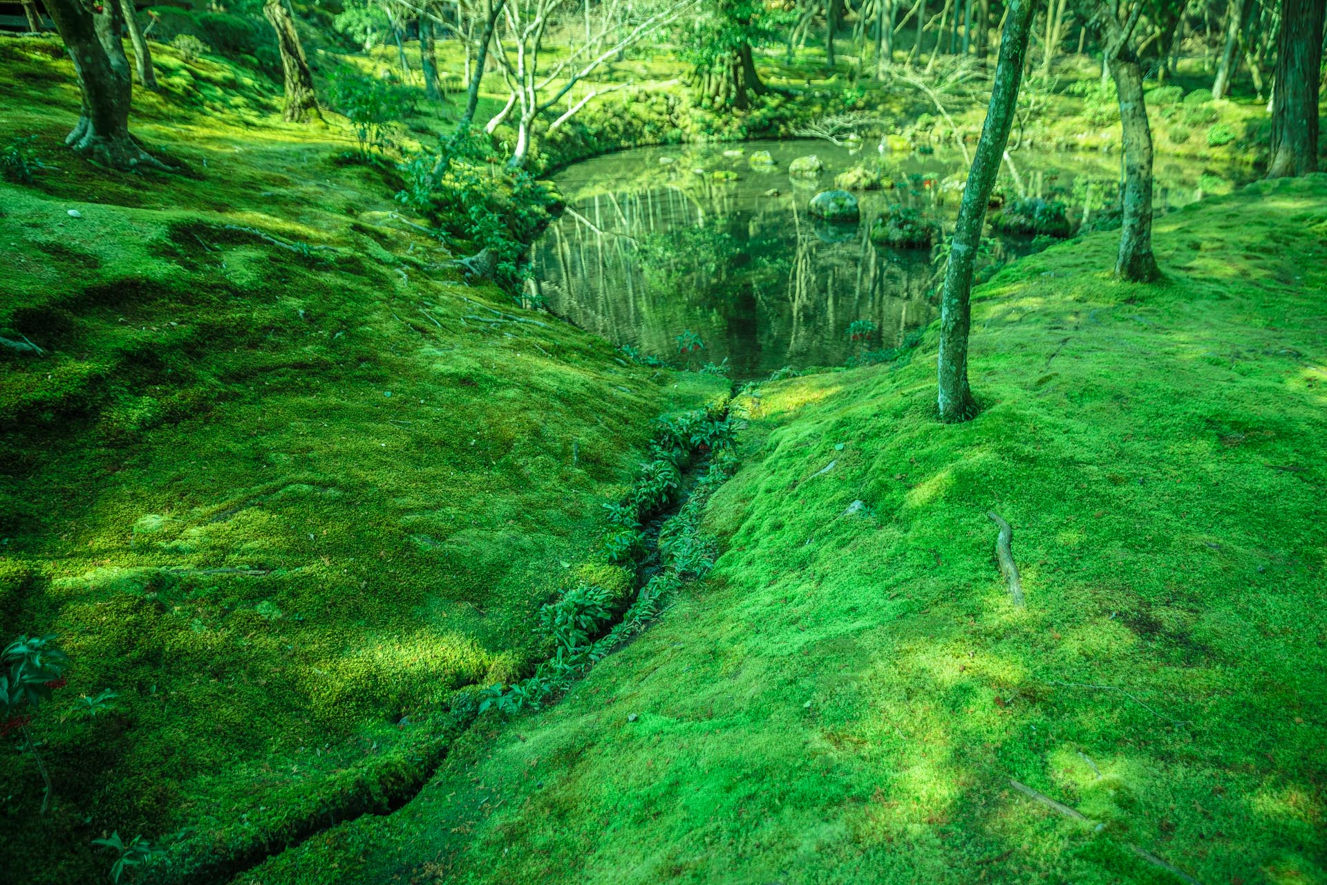 Visits to Koke-Dera can be arranged throughout the year. However, a summer visit between early June and late July — after the rainy season — is highly recommended. During this time the moss thickens, giving it a strong, lush aesthetic. Alternatively, you can visit during sakura season or in late autumn, when the sakura or colored leaves provide a gorgeous contrast to the moss, emphasizing the richness of the green garden.