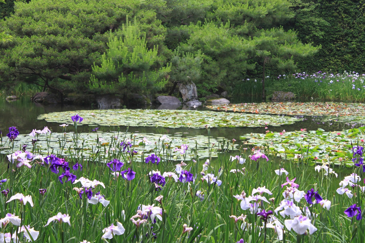 Then it was on to the Heian Shrine Garden, one of my favorite spots on Earth. That garden is planted so that some flower is in bloom at all times of the year. When I lived as a teenager in Kyoto I would go once a month to the garden and marvel how it would be transformed in some new, beautiful way every time. This month the cherry blossoms were everywhere. That month the water lilies were opening. On this trip in June we hit the full profusion of irises.