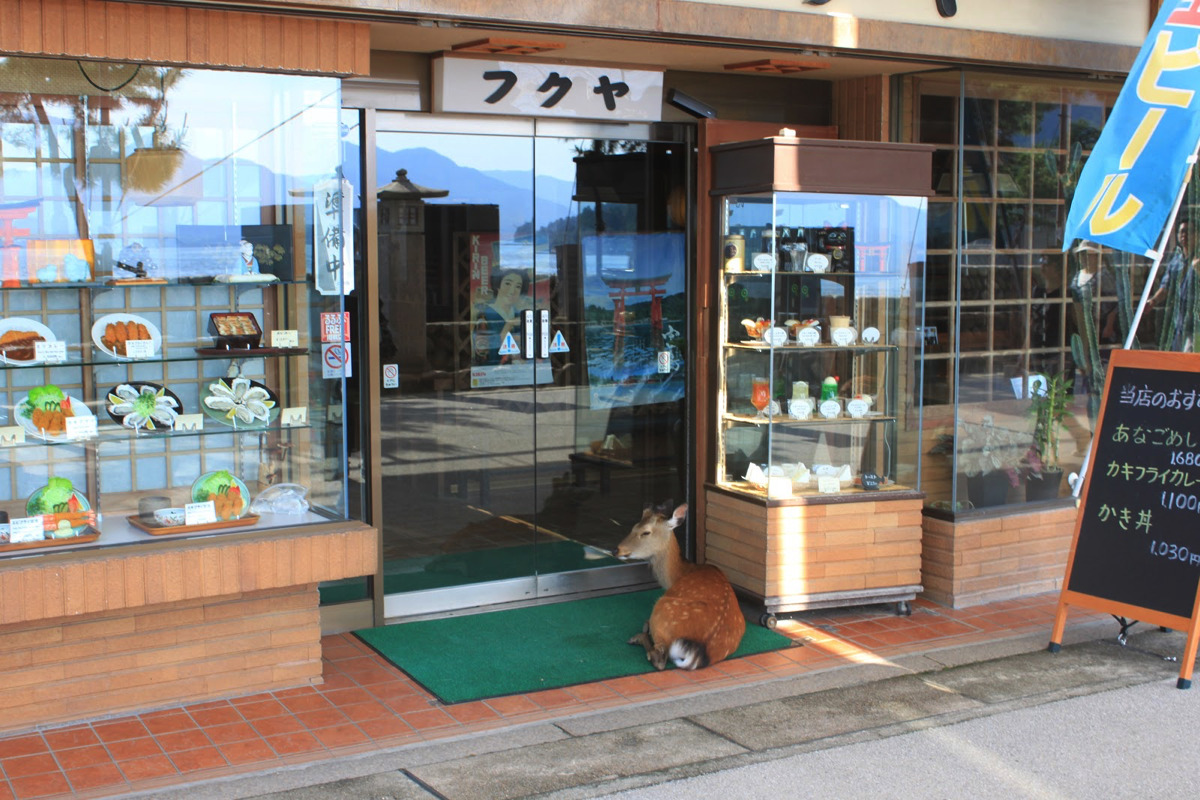 The deer here are much more polite than at Nara; we even noticed one waiting patiently for his favorite shop to open.