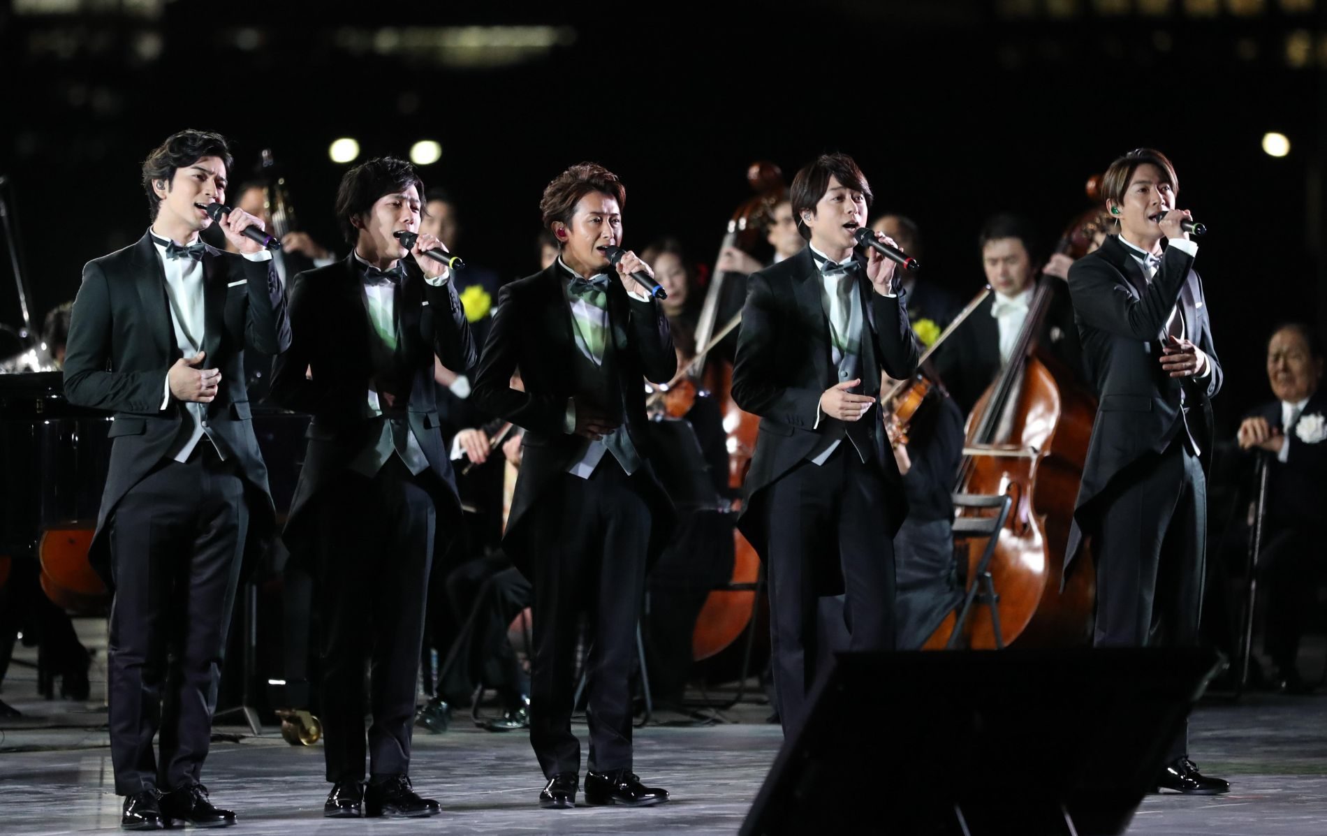 An estimated crowd of 30,000 graced and witnessed the event, according to national broadcaster NHK, among them kabuki actor Hakuo Matsumoto, Japan Olympics Committee chairman Yasuhiro Yamashita, world-famous pianist Nobuyuki Tsuji, composer Yoko Kanno, ARASHI band members, as well as Prime Minister Shinzo Abe and other politicians.