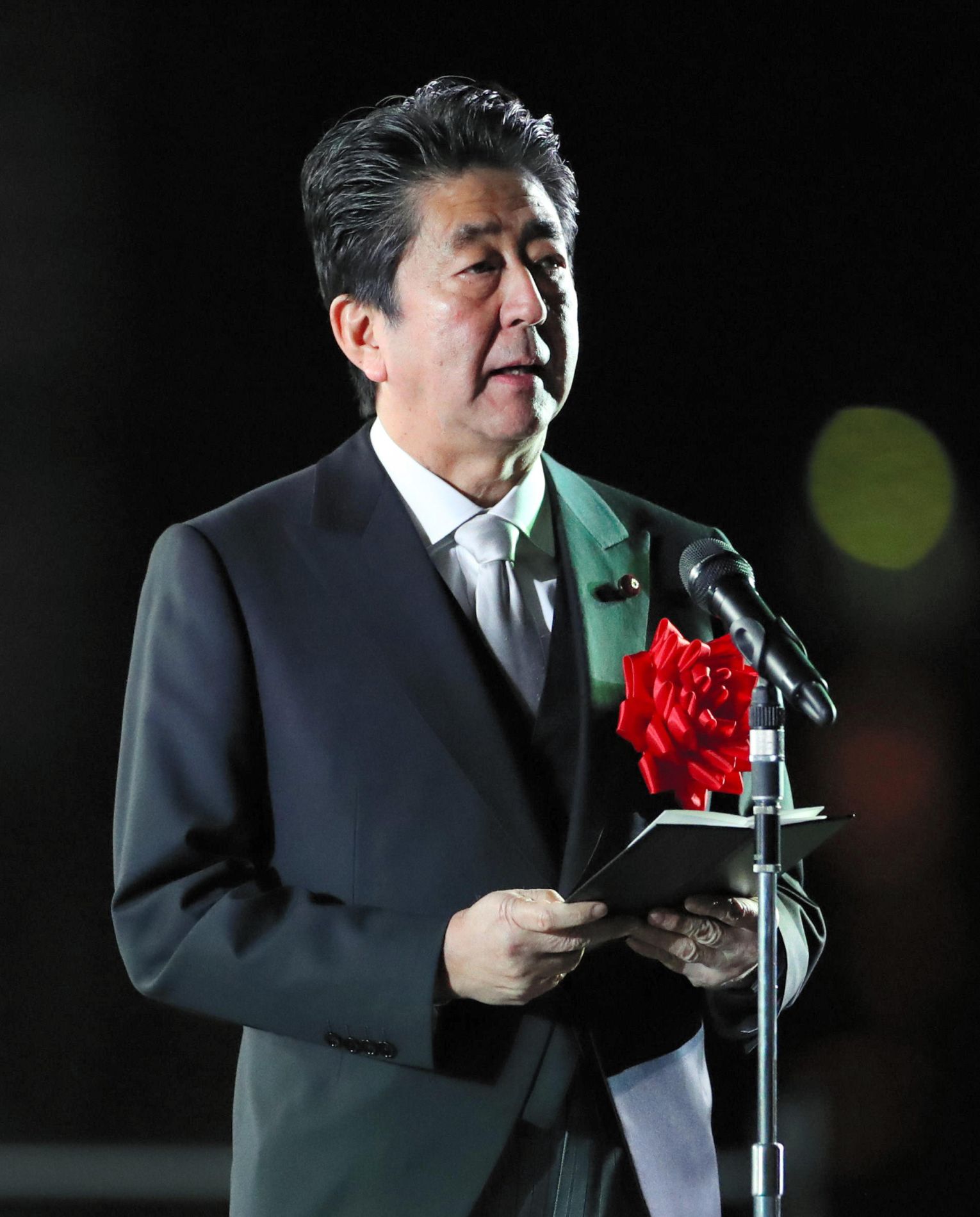 In a short speech, Prime Minister Abe called on the people to “keep in [their] hearts the desire of the Emperor to build a country full of hope where everyone can thrive.”