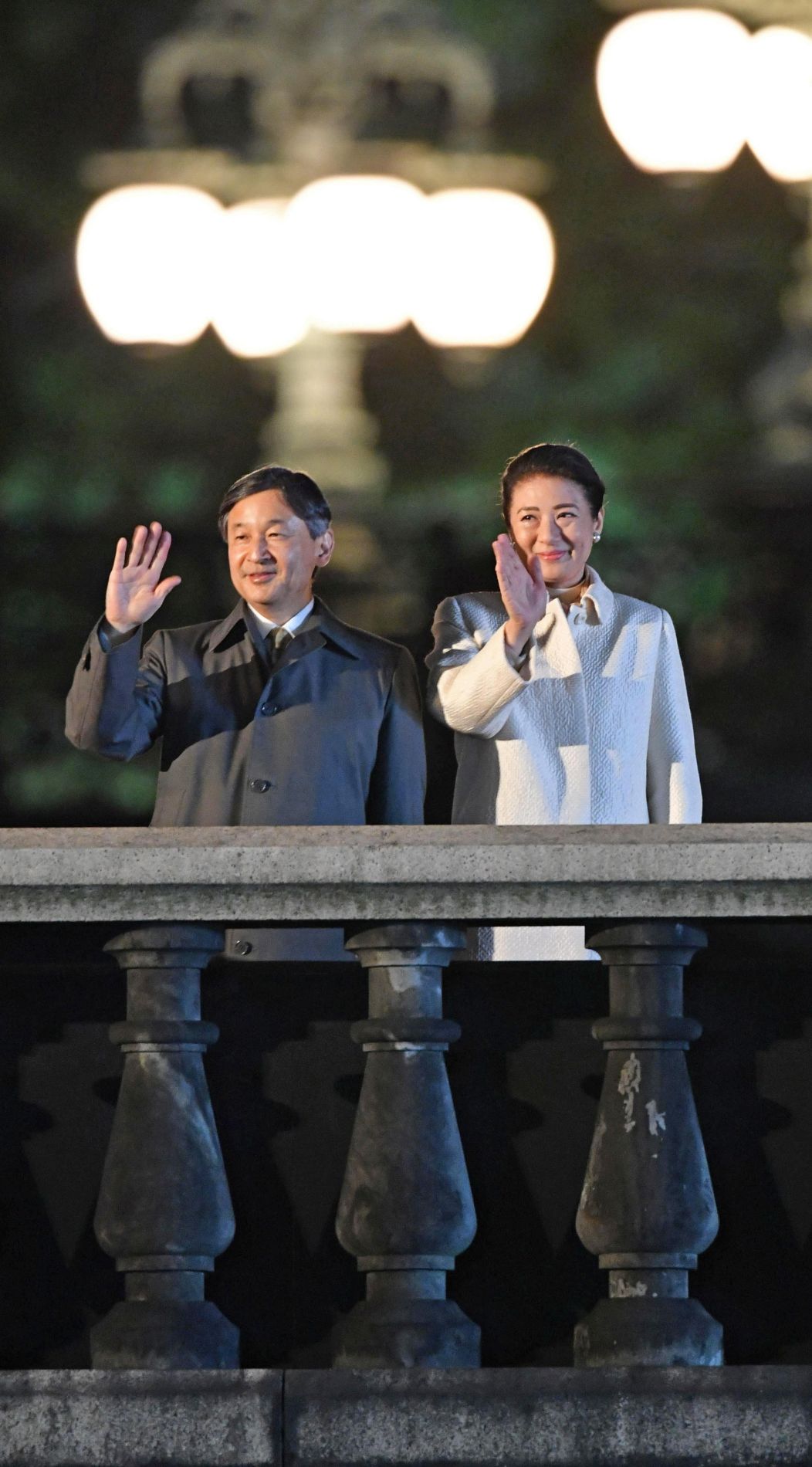 Just after 6 P.M., the new Reiwa Emperor and Empress appeared out of the imperial gates near Ishibashi bridge, greeting and waving to the performers, politicians, and guests.