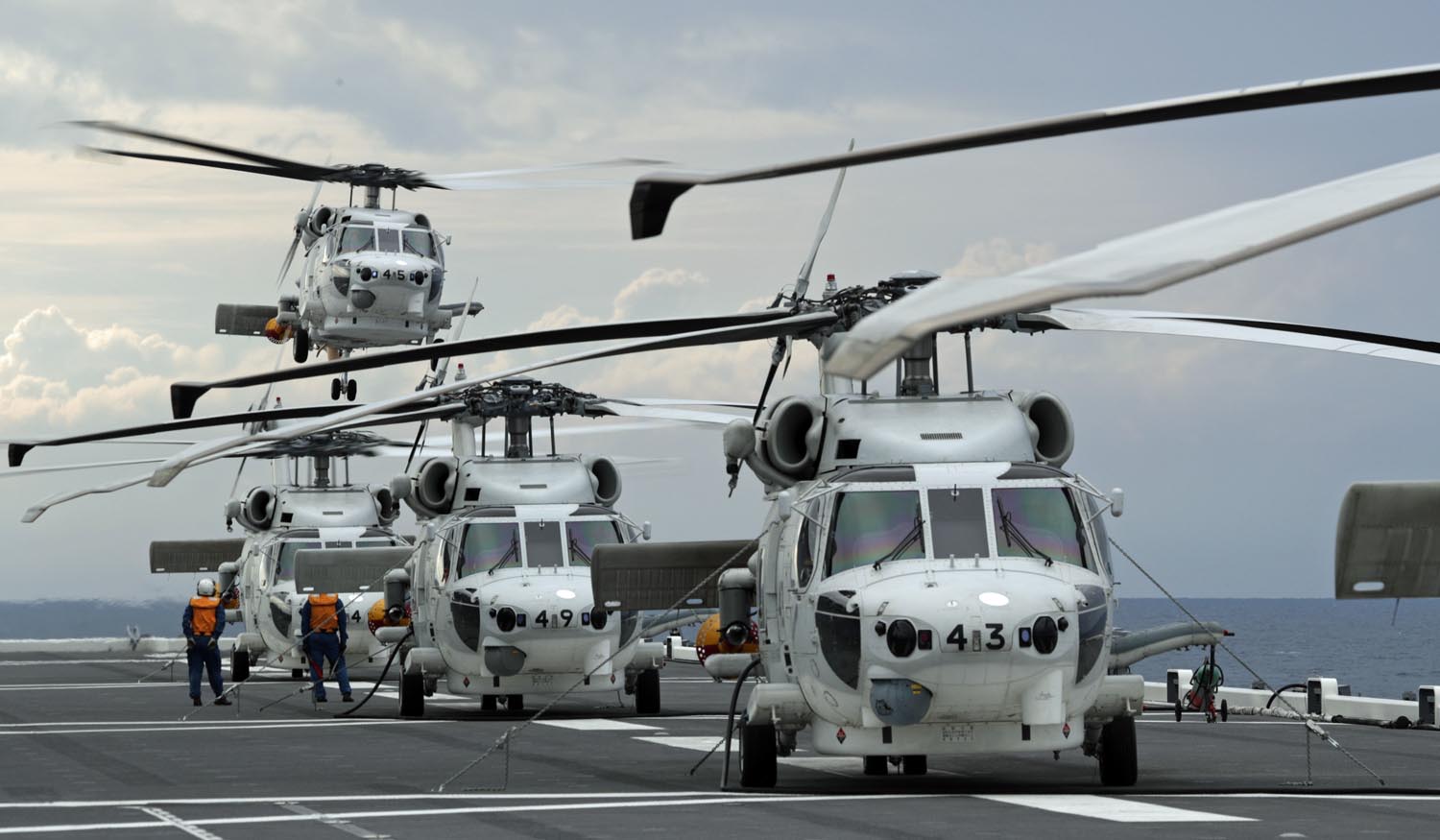 The MSDF now possesses two 30,000-ton class ships with flat flight decks that give them the appearance of aircraft carriers. Currently the ships can deploy 10 helicopters each.