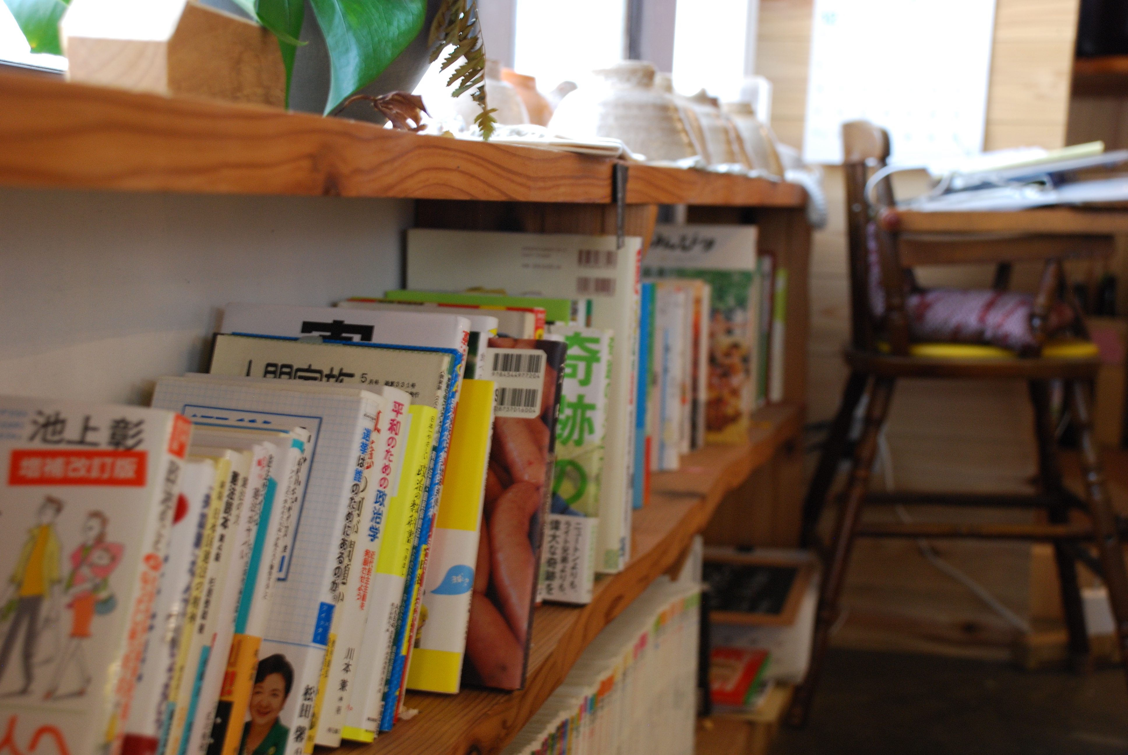 The café itself is a bright, vibrant space with stunning handcrafted wooden tables, chairs, and even kotatsu. It also contains a variety of non-fiction books, many specifically about Hiroshima.