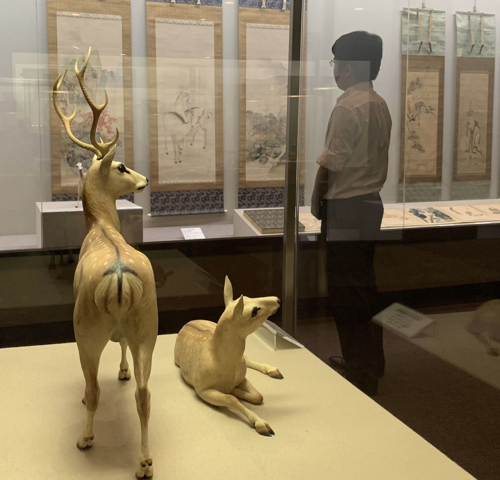 An elaborate pair of wood-carved white deer, “A Pair of White Deer" (Wood with Polychrome), circa 1900 by Sadayuki Goto, are startlingly lifelike and a stellar representation of the company’s namesake.