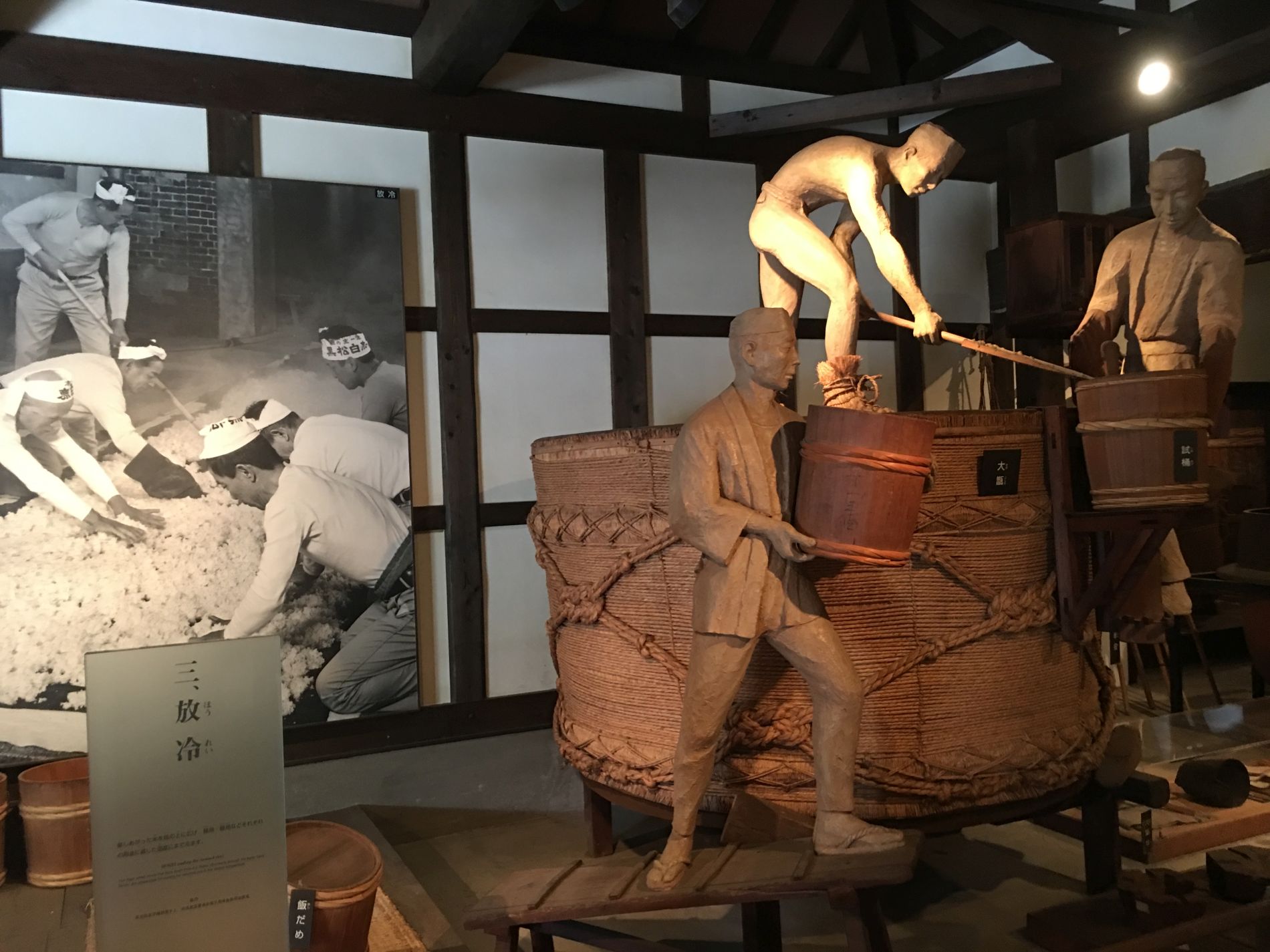 At the other building of the museum called “Sakagura-kan”, visitors can learn about how traditional sake is made and see parts of the brewery that were turned into rubble by the Hanshin-Awaji Earthquake of 1995.