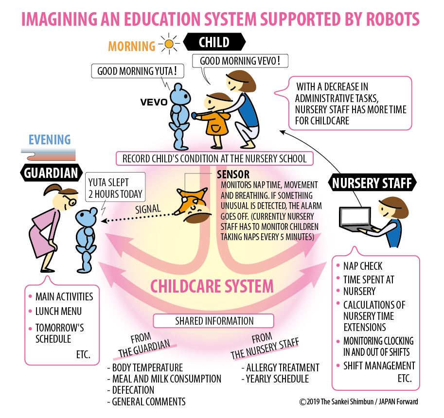 He pointed out that the robots' AI (artificial intelligence) judgments are based on the value judgments of the nursery school teachers, adding: "We hope to set up an environment that lets ambitious teachers achieve their goals. In the future, we want to nurture personnel that are able to accumulate and analyze data concerning developments.”