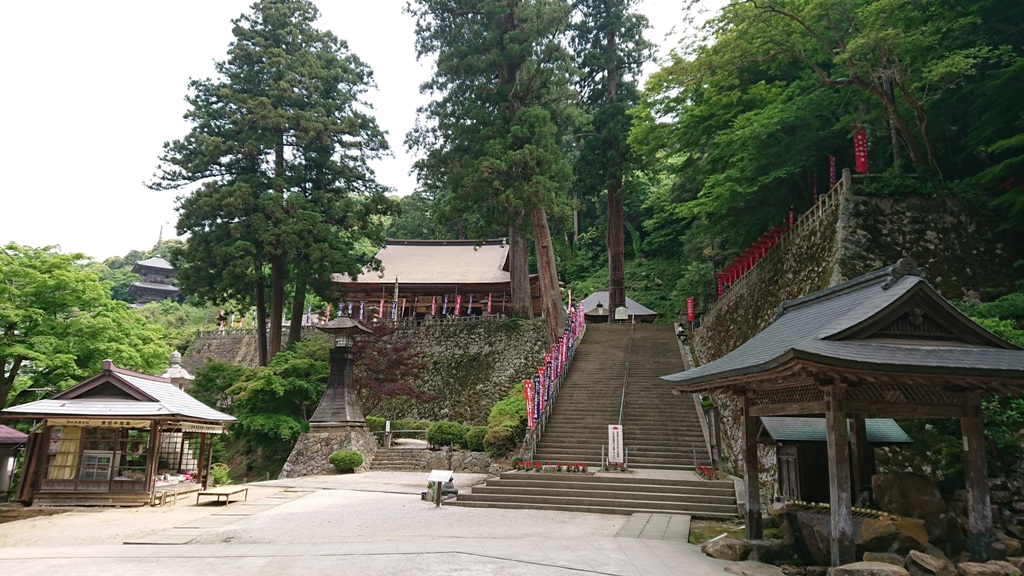 There is also a five-story pagoda on the route to a rock in the nearby forest, where Shikanosuke was said to have sharpened his sword. The stone is also on the route of a special pilgrimage to 33 statues of Kannons around the grounds of the temple, where worshippers pay tribute to each one in order to honor the souls of their ancestors.