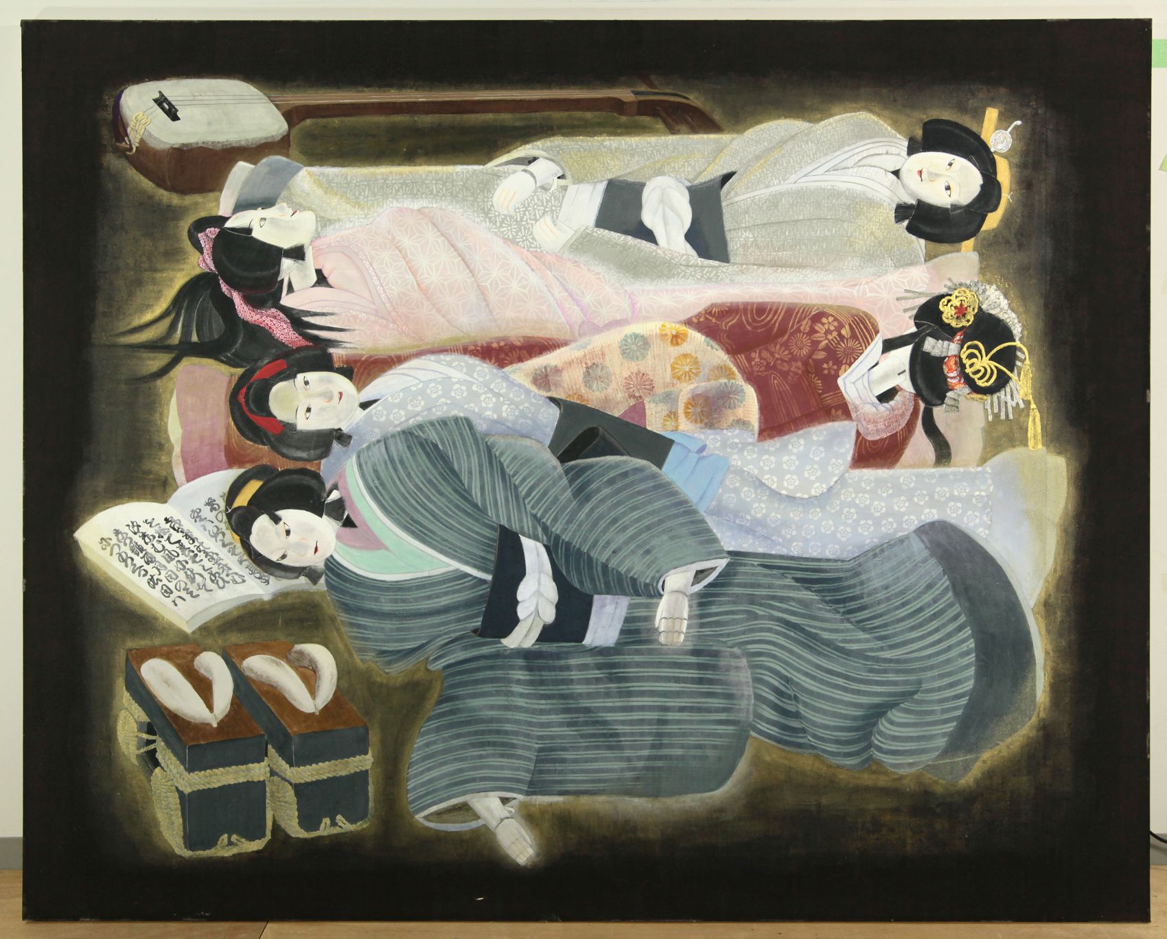 The spectacle and brilliance of these performing arts, all live entertainment, cannot be wholly comprehended through a 2D platform. However, in this exhibition the combination of the artists’ tastes and the painted artworks’ reflection of their sensibilities stimulate one another to bring the works to life, creating a whole new level of allure.